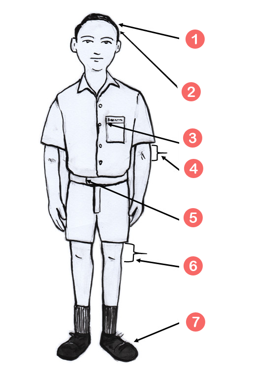 • சட்டையின் இடது பாக்கெட்டில் பள்ளி சின்னம் அணிந்திருக்க வேண்டும்.