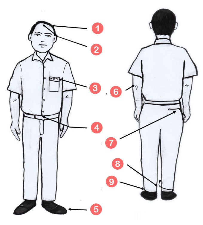• பேன்ட்டின் பின் பாக்கெட் வலது பக்கம் இருக்க வேண்டும்.
